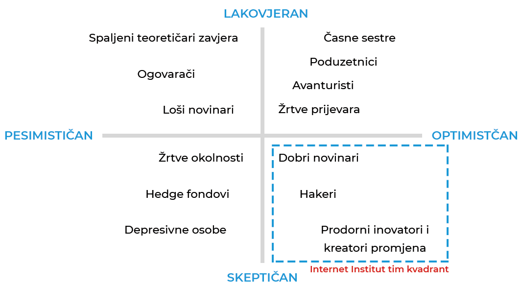 Kod naših potencijalnih članova nam je također bitna usklađenost s našom kulturom (culture fit) i načinom razmišljanja (mindset). Pri tome je važno istaknuti kako to ne znači organizacijsko jednoumlje, nego upravo suprotno. Sloboda mišljenja, izražavanja i djelovanja. Iz tog su razloga i naši kreativni sastanci kaotični, temperamentni i često na rubu 💥 incidenta. Isto tako smo vremenom uočili da cijeli naš tim ima čvrste zajedničke odrednice, te smo profiliranjem došli do zanimljivih spoznaja. Ovo je rezultat: